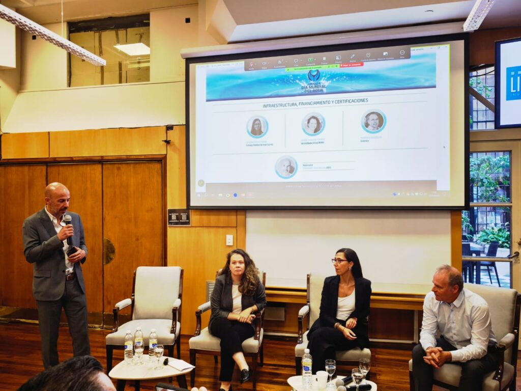Fernando Cruz Molina (Tesorero de AIDIS Argentina), moderó la mesa «Financiamiento y certificaciones» y el panel contó con la visión de representantes del Consejo Federal de Inversiones, el Banco Mundial y la AWS (Alliance for Water Stewardship) – Greenco.